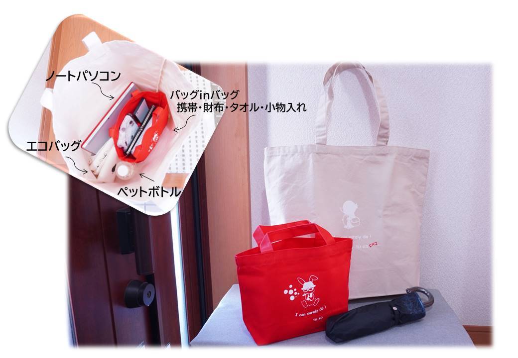 ミニトートに財布や携帯などを入れてちょっとしたお買い物にも便利です。